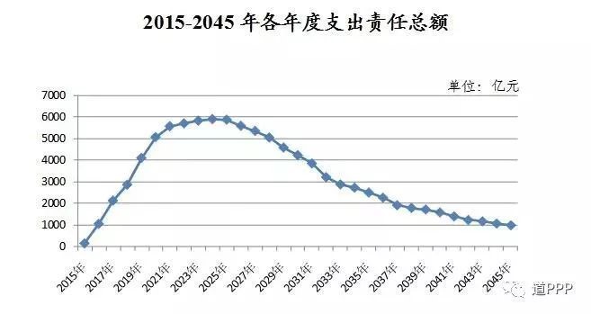 經(jīng)對財政部PPP項目庫6400個、總投資約10萬億元的入庫項目2018年1月末財承報告數(shù)據(jù)進行分析,2015-2045年間,需要從一般公共預算中安排的支出責任總額為9.9萬億元,年均支出3194億元。其中,已落地項目2921個、總投資4.9萬億元,涉及支出責任4.7萬億元,占支出責任總額的47.5%,年均支出1581億元。
